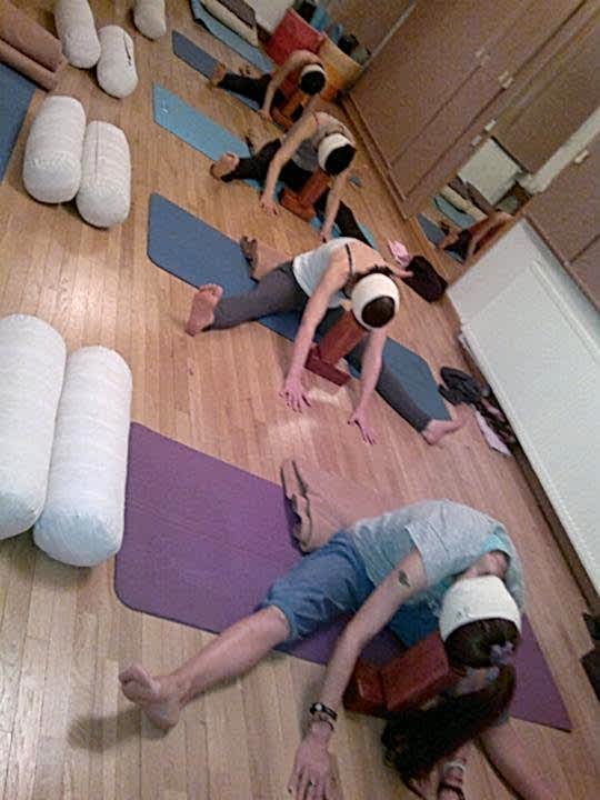 Beden, yastıklar, battaniye, sandalye, blok ve diğer malzemelerle desteklenir ve mümkün olan en derin gevşemeye davet edilir.